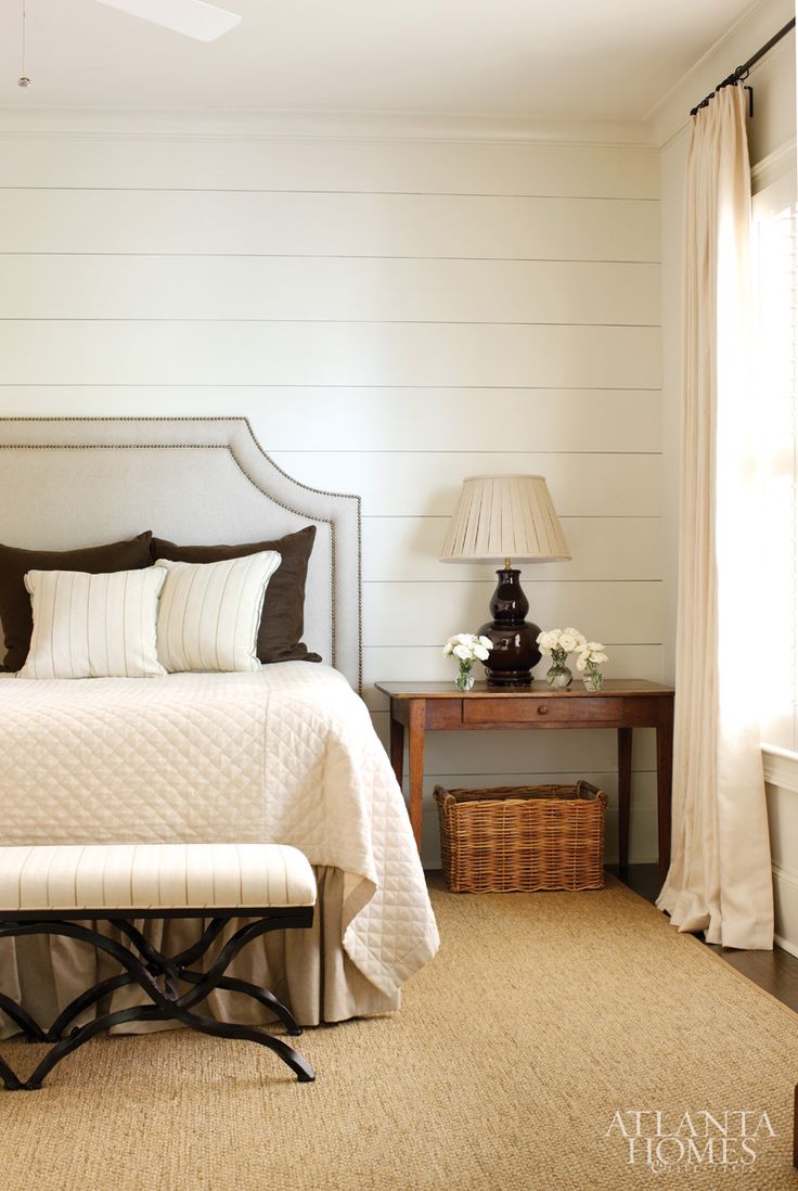 I don’t love planked walls in a bedroom because they tend to have an outdoor connotation to me. However, they clearly can look fabulous – especially on a headboard wall.Planking in Kitchens is frequently seen on the ceiling too – it really amps up the charm in a renovated bungalow or cottage kitchen. It can also save you money on tile…This renovated farmhouse tends toward the severe and I think it’s warmed up by the texture of the wall and ceiling planking. Click on the photo for a link to photo’s of the entire home.Four Generations One Roof has a great tutorial on how to install a plank wall (click on the photo for a link)- a lot of other blogs do as well. Adding a planked wall to new construction helps add character and age – just keep in mind that it does add an outdoor feel to an indoor room so be mindful of where you install it.