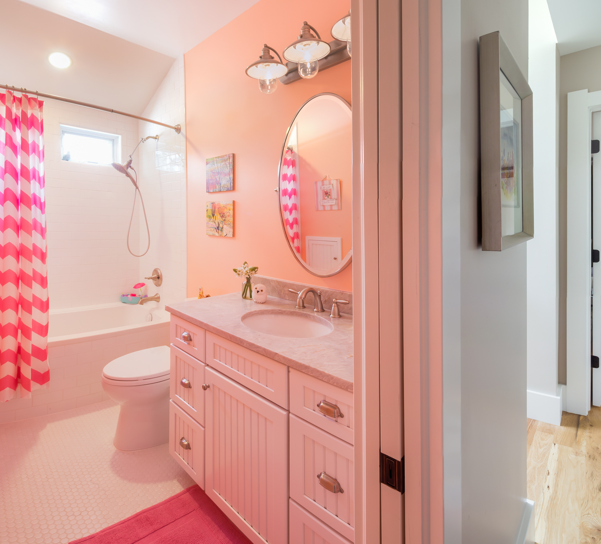 This home is a 1920’s Craftsman Bungalow on a beautiful tree lined street in Denver’s Historic Congress Park. My clients loved the location, the street and the home, but needed to expand its square footage to be more in tune with a 21st century lifestyle. They did what many people do in this situation and raised the roof yet they did it in such a stylish and thoughtful way that respects the original Craftsman Bungalow and respects the neighborhood that I always leave their home thoroughly in love with its charm. Here are some of the renovated and brand new bathrooms in the home – I can’t wait to share the rest of the home with you once we’ve finished with the final touches!