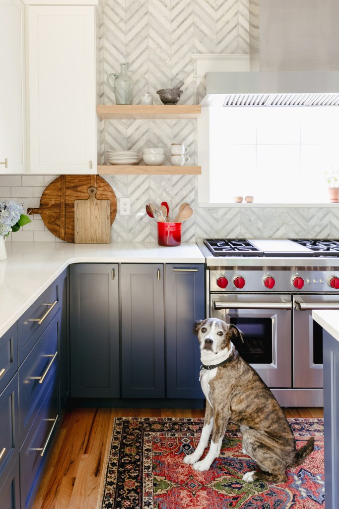 The custom cabinetry in the home was purchased from Sander and Sons, a family owned and operated business out of Littleton, Colorado. The kitchen appliances are from Specialty Appliance in Greenwood Village. Bowie, the family dog posed for us in front of almost every shot – but this is the one we used. No treats were required, he knows he’s a star.