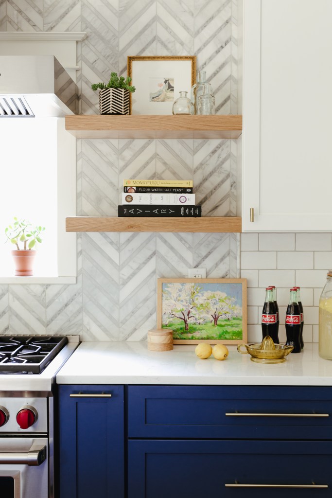 One thing I really love about this kitchen is the stove positioned directly in front of the window. In smaller spaces and older homes, sometimes there’s not a huge choice for the stove. In this case they could have put the stove on the island, but that would involve either an island hood (which visually take up a lot of room), or a slide-in stove with a down draft and there aren’t a lot of those to choose from. I love that the sink faces out and stove faces the window.