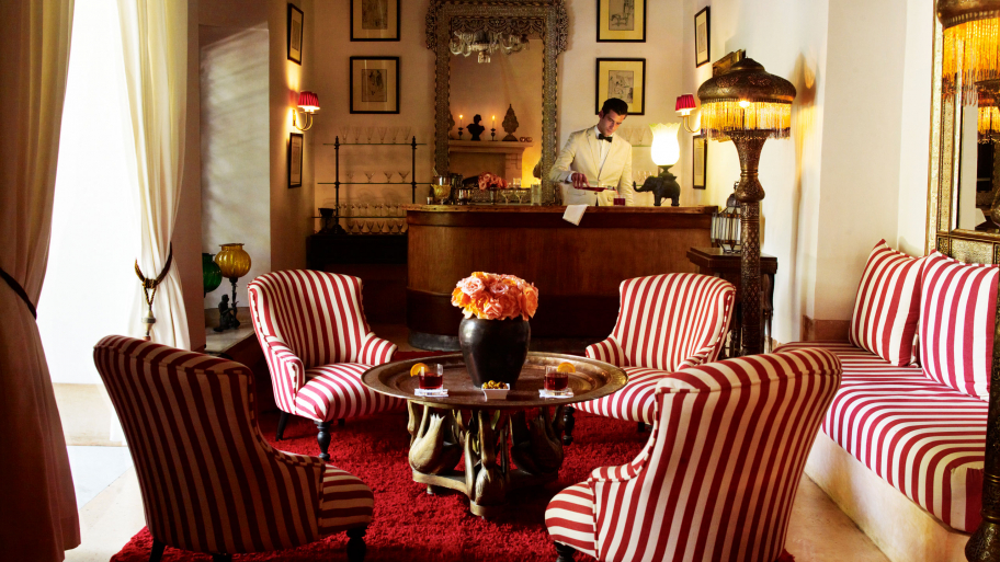 This is a Jasper Conran hotel in Marrakech. I love the atmosphere the red stripes, orange flowers and red lampshades bring. I’d love to bring a little bit of this feeling into a home. (Photo Source)
