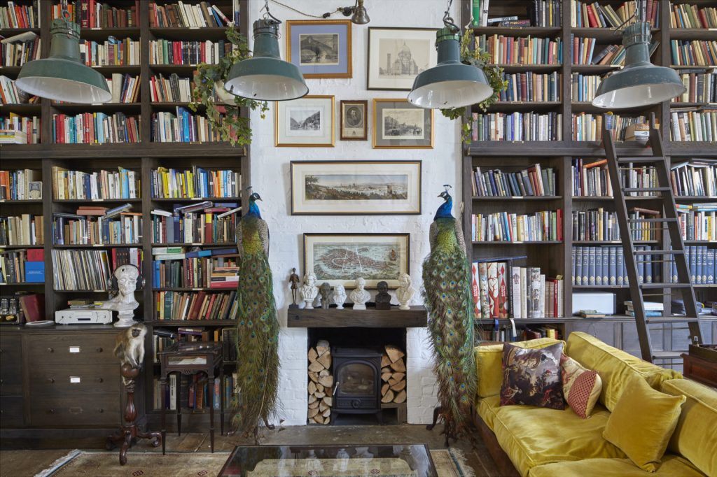 I could do without the taxidermy, but I love everything else. I used to have a yellow, velvet sofa and, with confidence, I can say it improved my mood. (Photo Source)