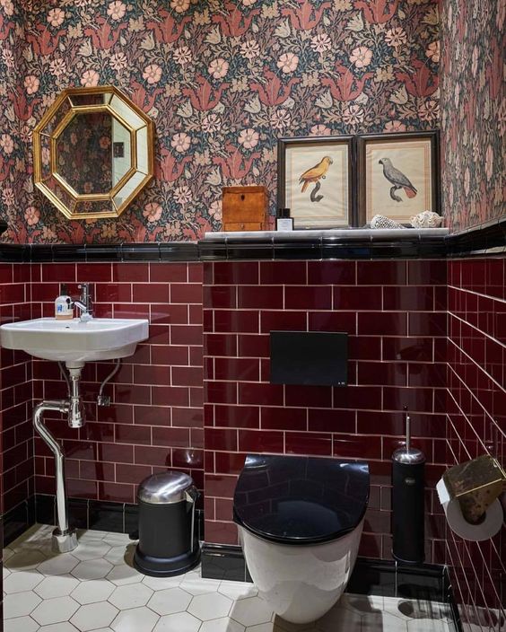 Vintage Bathroom Inspiration: Red and Pink Tile