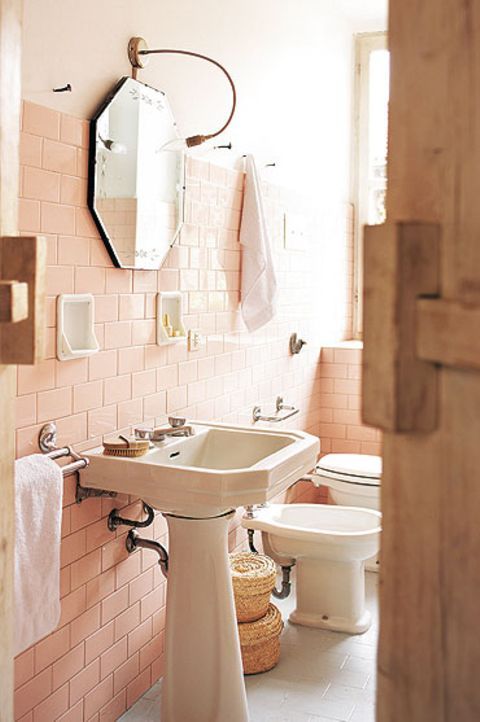 1. My Aunt Mabel had a delightful bathroom done all in rose tile and fixtures. It was magical, with gold pendant lights, and a gold lipstick holder filled with many tubes held upright. Thanks for taking me back!