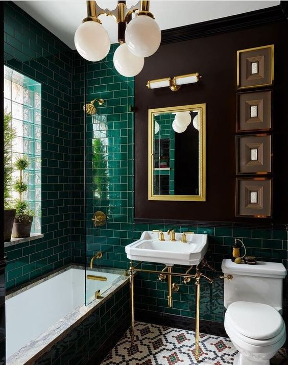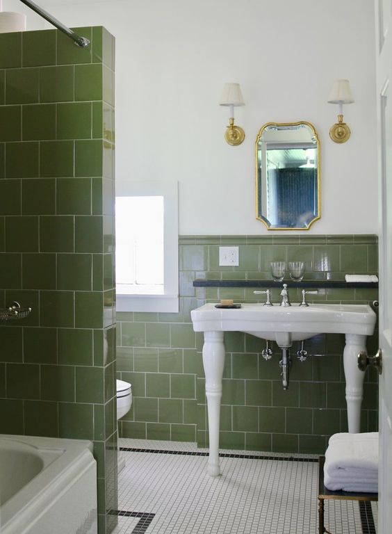 Vintage Bathroom Inspiration: Green and Black Tile