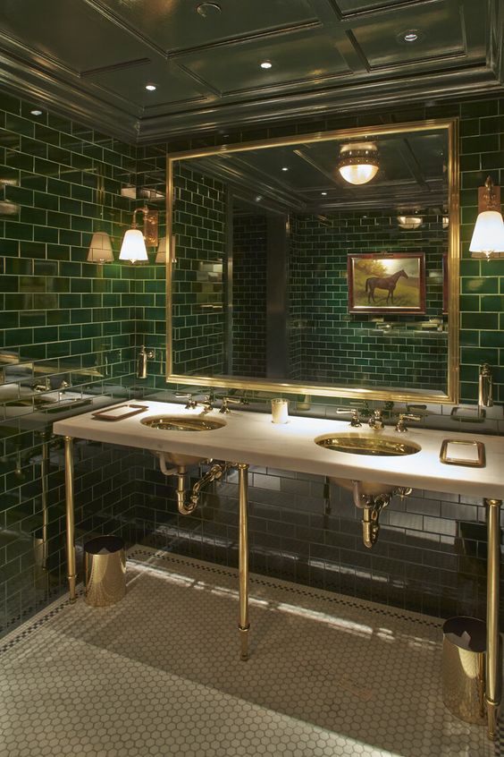 That last image is the Polo Bar’s restroom in New York City. I love the boldness of the green, black and white combination. It looks great paired with brass and, even though green is trendy right now, I think it can be a classic look.
