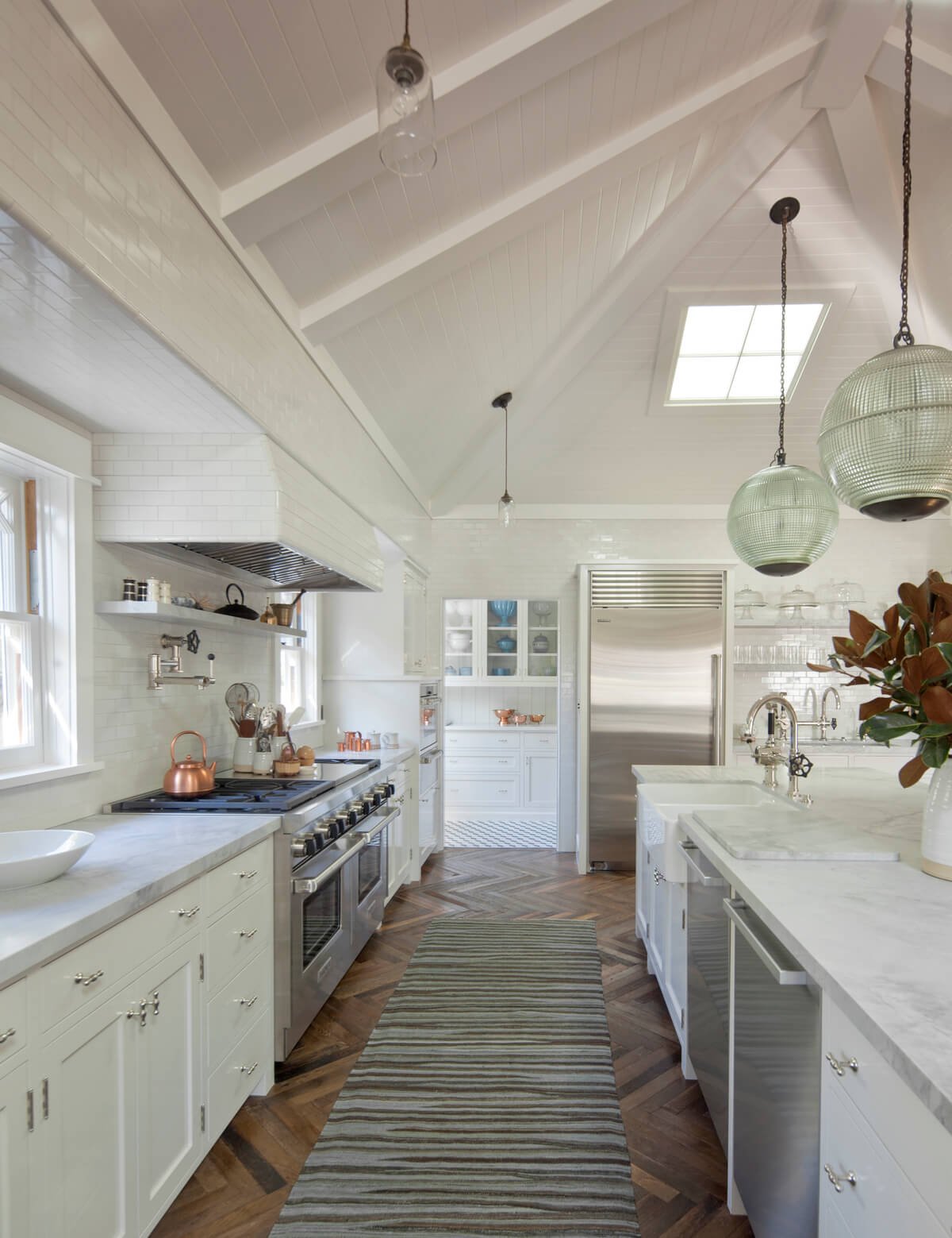 I think the architecture of the room combined with the pendants instead of can lights remind me a little bit of a Nancy Meyer movie. It’s easy to say you’re sick of white kitchens, but there’s a case to be had for the longevity of white.