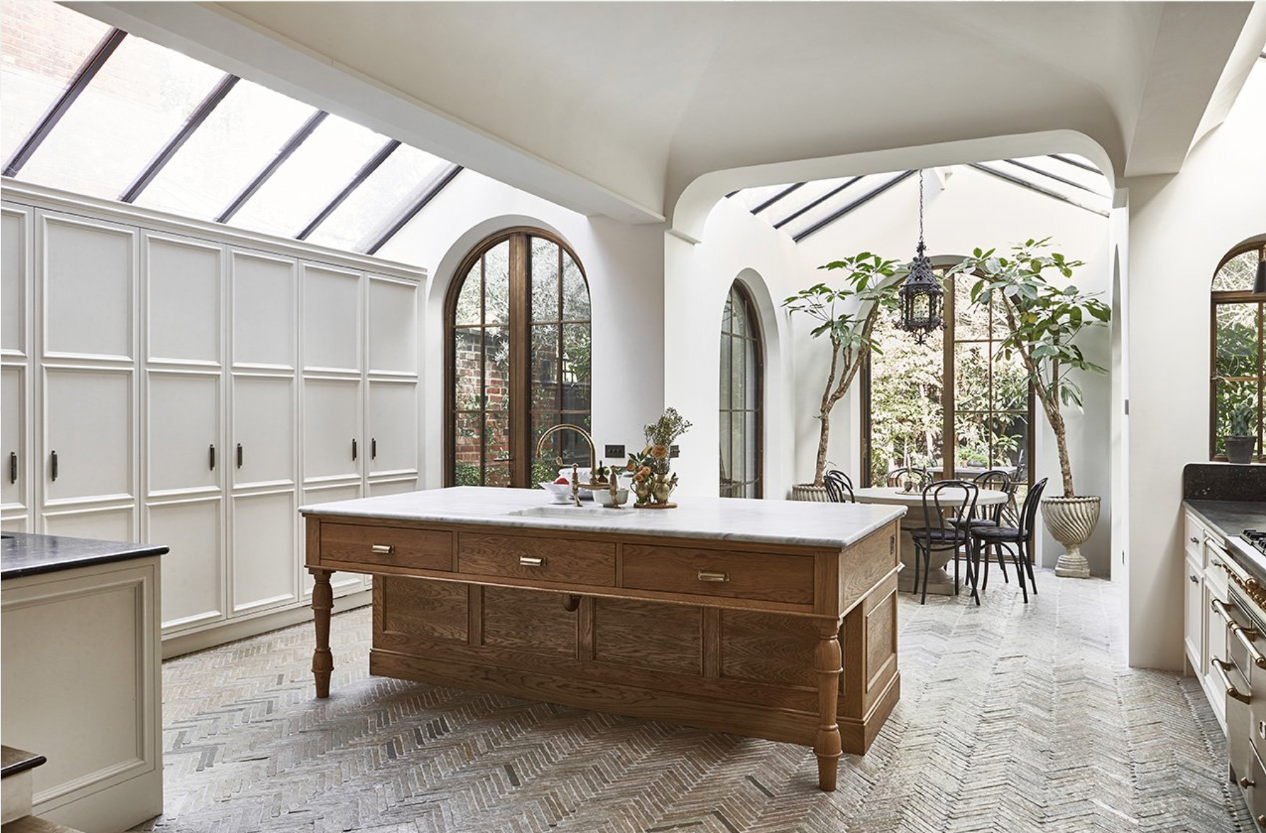 Look at that island – it’s glorious! The floors! The arches, the skylights – it’s too much. Why would you ever leave this home? (Photo Source)